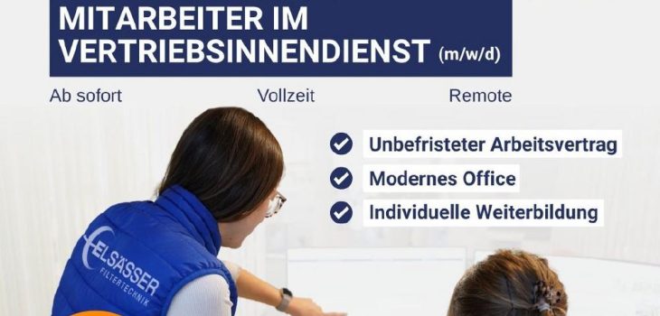 - Erfahrung in der Kundenbetreuung und Export von Vorteil – engagierte Berufseinsteiger sind ebenfalls willkommen